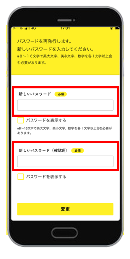 ※新しいパスワードには8桁~16桁以内のアルファベット大文字、小文字、数字3種のみ全てを入れて作成して下さい。