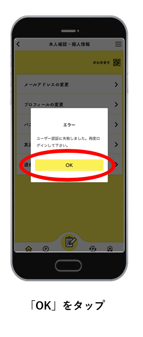 自動ログアウトされた場合、Androidの方は新規画面が表示されますので、以下の方法でログイン画面に進んでください。