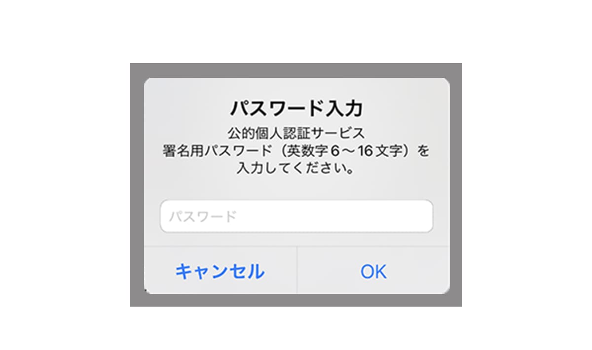 パスワードを入力「署名用電子証明書パスワード」